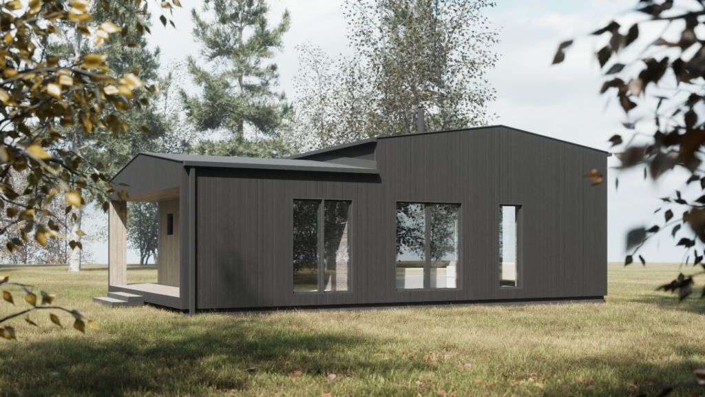 Loma-asunnossa on kaksi makuuhuonetta sekä L-muotoiset yhteiset tilat; ensimmäisenä suuri keittiö, jossa on runsaasti kalustetta. Päädyssä ja kulman takana jatkuu ruokailu- ja oleskelutila, joista avautuu suuret ikkunat päämaiseman suuntaan. Olohuoneessa on huomioitu myös tulisija ja paikka televisiolle.
