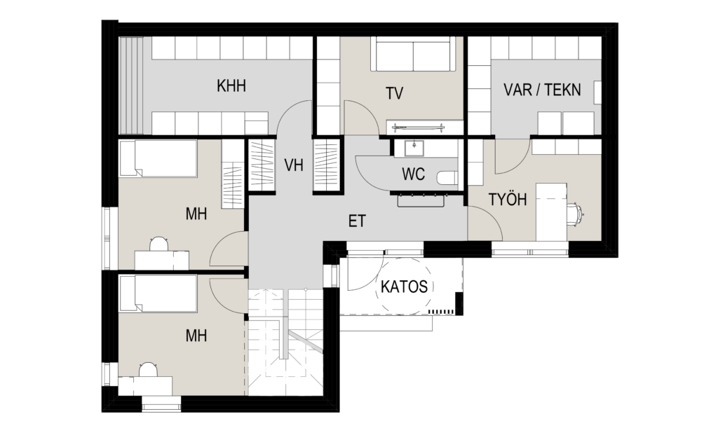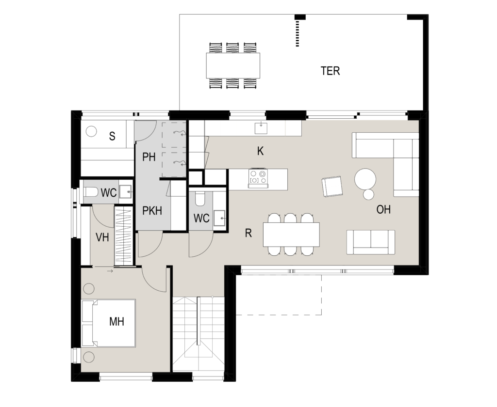 Rinne-sarjaan kuuluvan L-mallin nimi perustuu pohjan muotoon. Mallin arkkitehtuuri on modernin yksinkertaista ja linjakasta. Talossa on yläkerrassa läpitalon avautuvia pitkiä näkymiä.